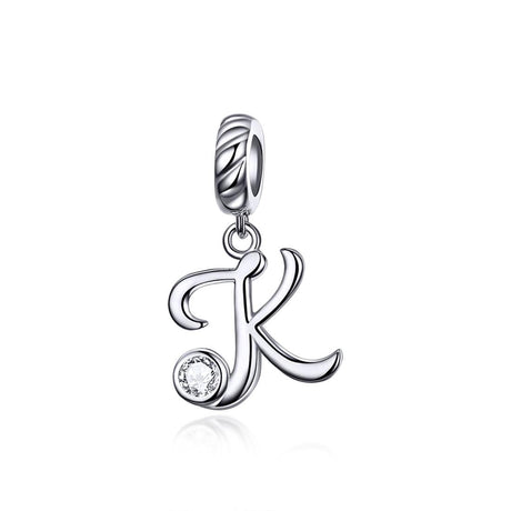 925 Sterling Silver 26 English Letter Pendant For Diy Bracelet Or Necklace Style - K