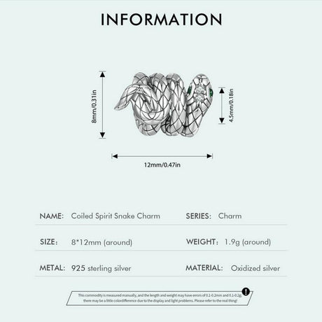 925 Sterling Silver Coiled Snake Pendant For Diy Bracelets