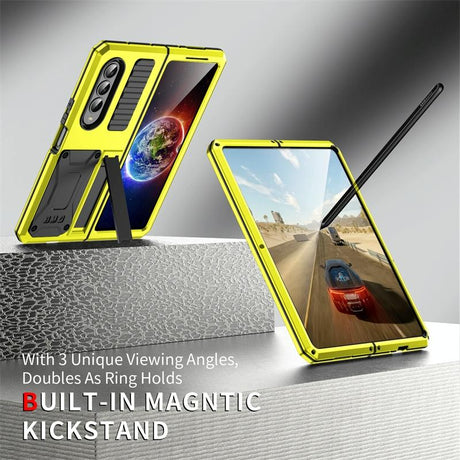 For Samsung Galaxy Z Fold4 5G Shockproof Metal Case With Holder - Yellow