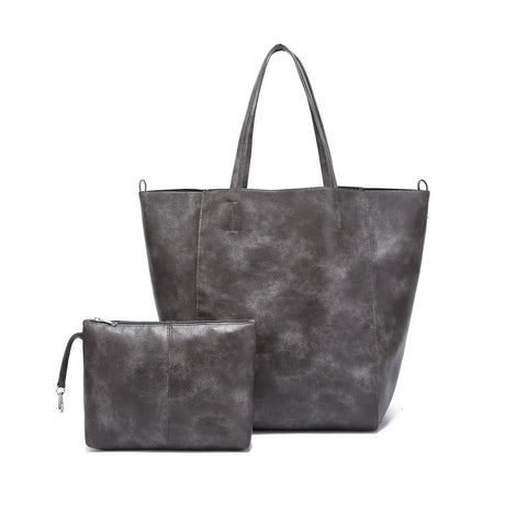 Grey Classic Large PU Leather Tote Bag with Inner Pouch - Elegant and Functional