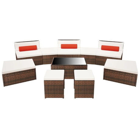 10 Piece Garden Lounge Set with Cushions Poly Rattan Brown