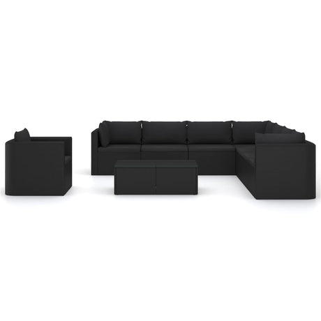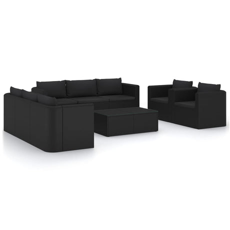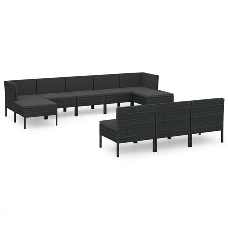 10 Piece Garden Lounge Set with Cushions Poly Rattan Black