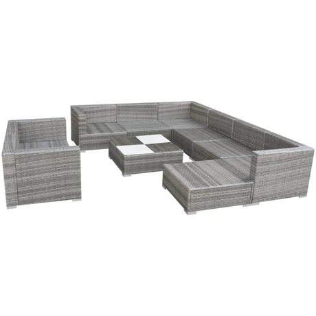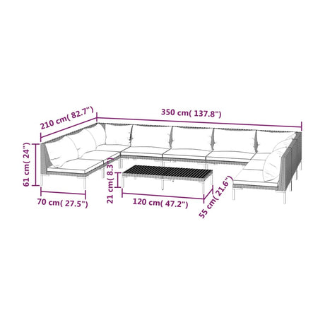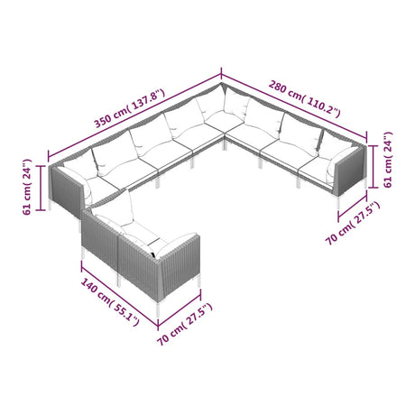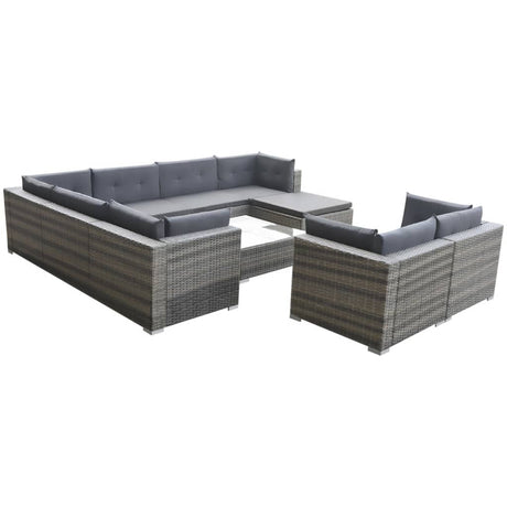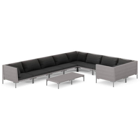 10 Piece Garden Lounge Set with Cushions Poly Rattan Grey