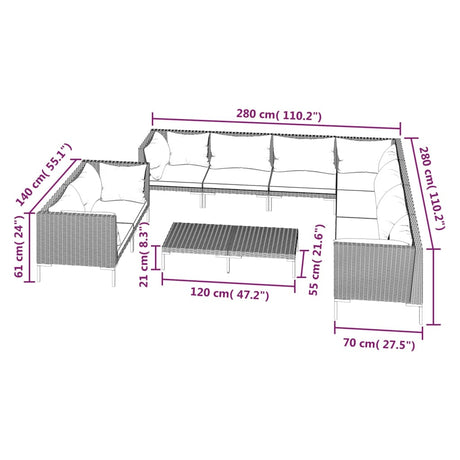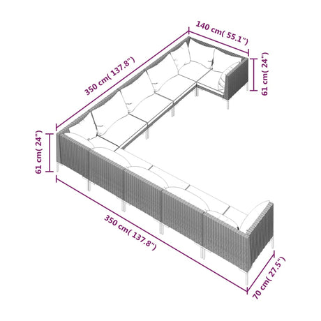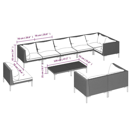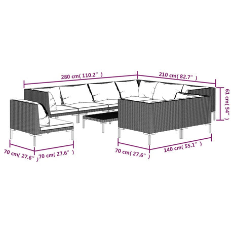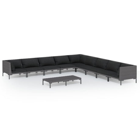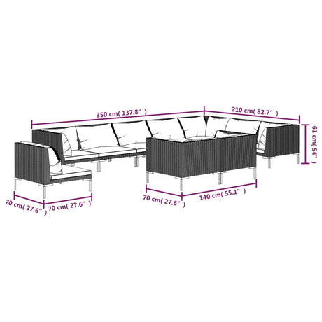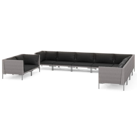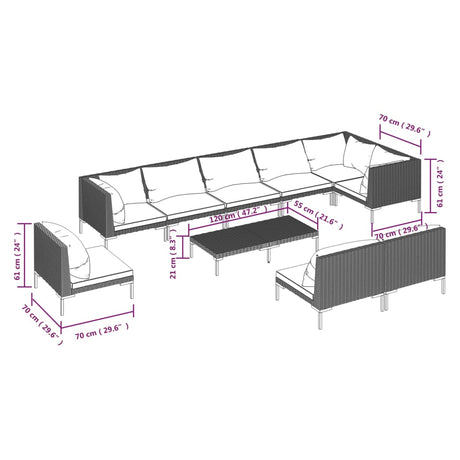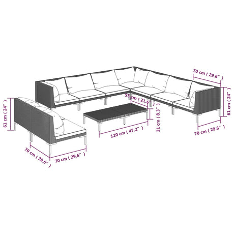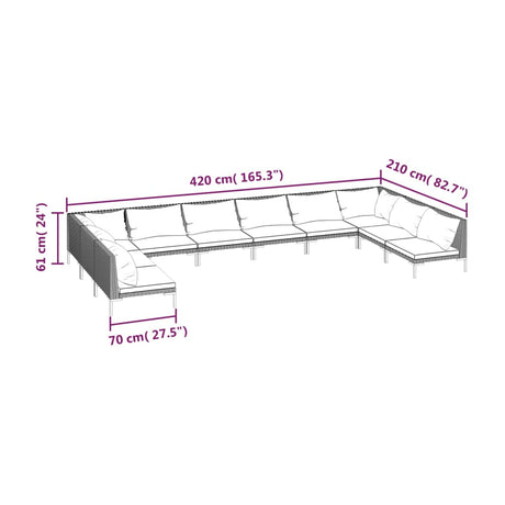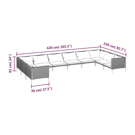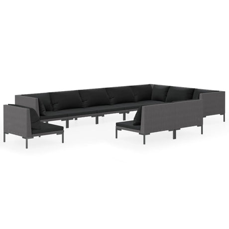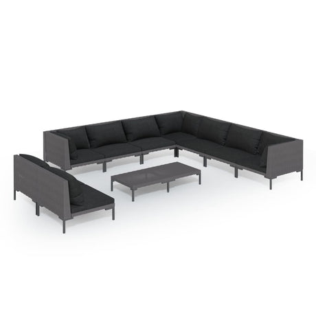 10 Piece Garden Lounge Set with Cushions Poly Rattan Dark Grey