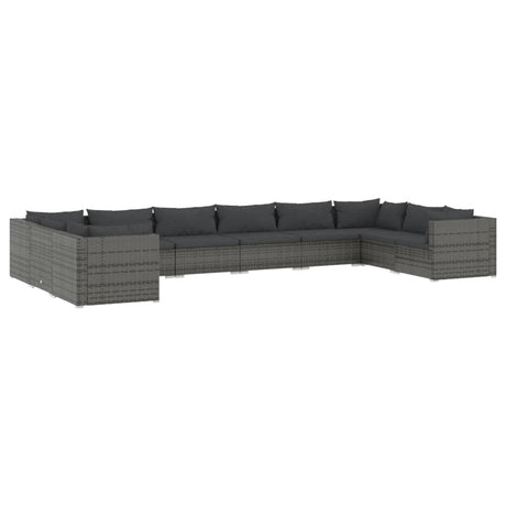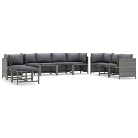 10 Piece Garden Lounge Set with Cushions Poly Rattan Grey