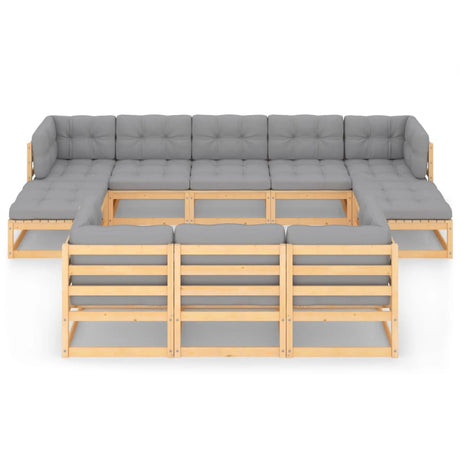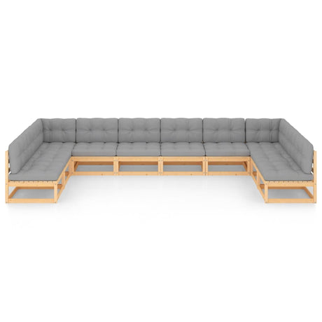 10 Piece Garden Lounge Set with Cushions Solid Pinewood