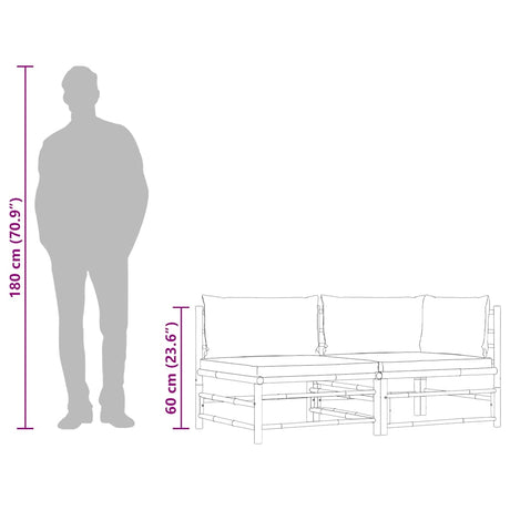 2 Piece Garden Lounge Set with Green Cushions Bamboo