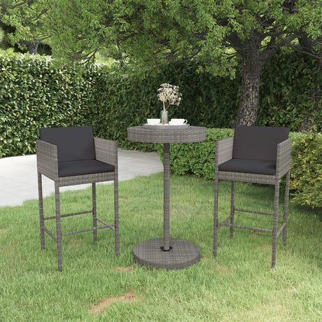 3 Piece Garden Bar Set with Cushions Poly Rattan Grey