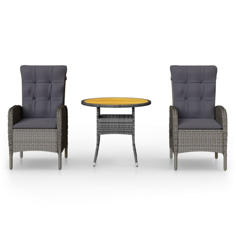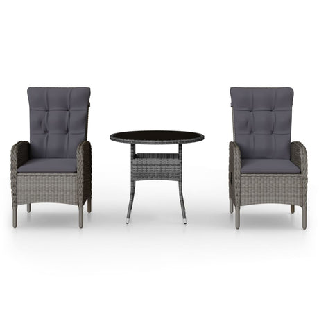 3 Piece Garden Bistro Set Poly Rattan Grey