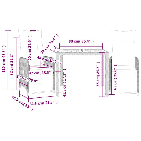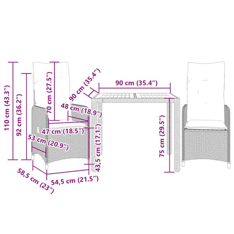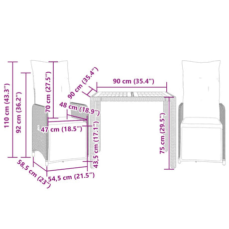 3 Piece Garden Bistro Set Poly Rattan and Tempered Glass Black