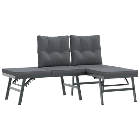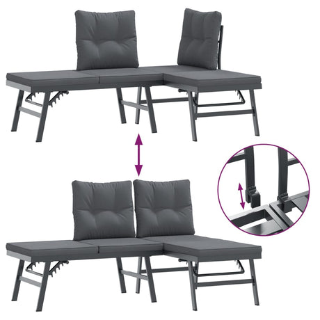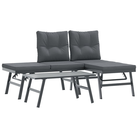 3 Piece Garden Bench Set with Cushions Black Powder-coated Steel