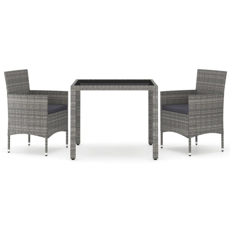 3 Piece Garden Dining Set Poly Rattan and Glass Grey
