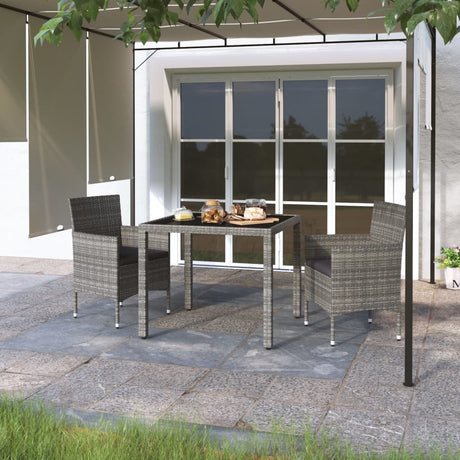 3 Piece Garden Dining Set Poly Rattan and Tempered Glass Grey