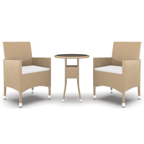 3 Piece Garden Dining Set Poly Rattan and Tempered Glass Beige