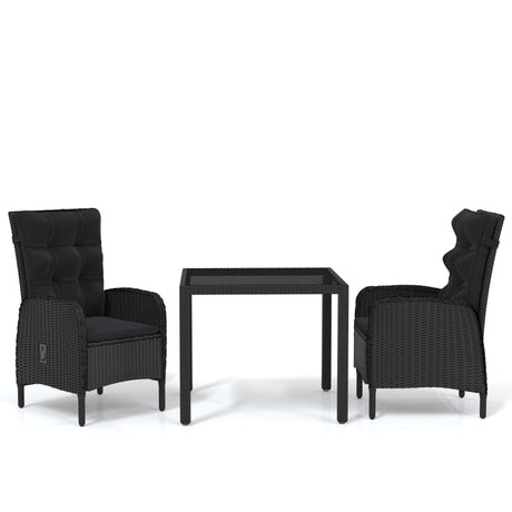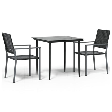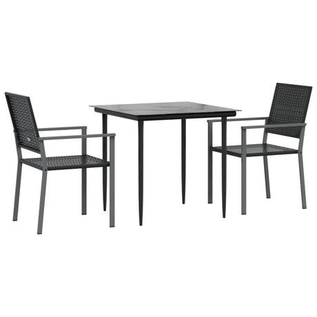 3 Piece Garden Dining Set Poly Rattan and Tempered Glass Black