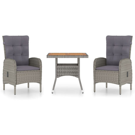 3 Piece Garden Dining Set Poly Rattan & Solid Acacia Wood Grey