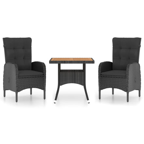 3 Piece Garden Dining Set Poly Rattan & Solid Acacia Wood Black