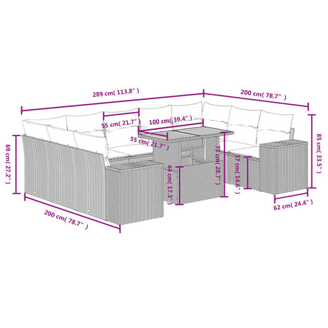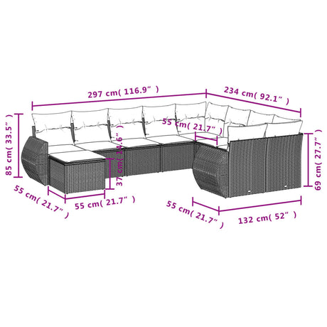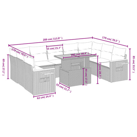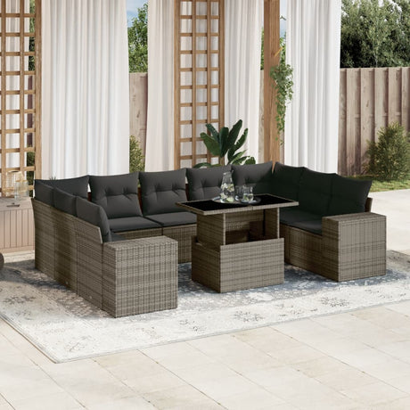 10 Piece Garden Sofa Set with Cushions Grey Poly Rattan