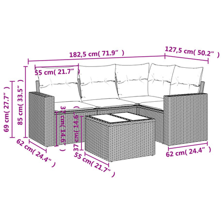 5 Piece Garden Sofa Set with Cushions Beige Poly Rattan Acacia