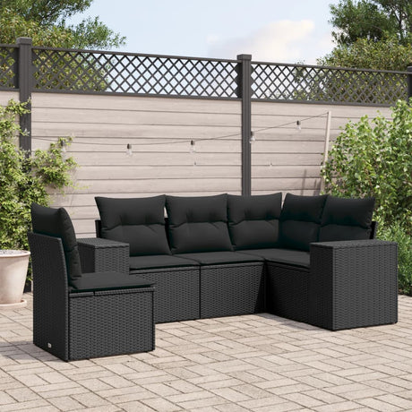 5 Piece Garden Sofa Set with Cushions Black Poly Rattan