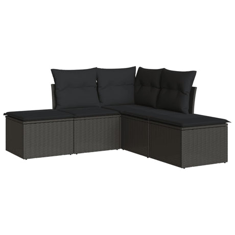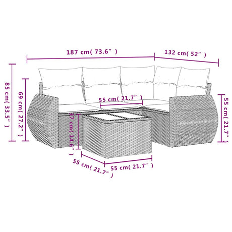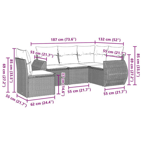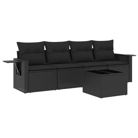 5 Piece Garden Sofa Set with Cushions Black Poly Rattan