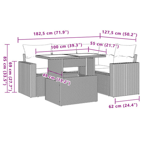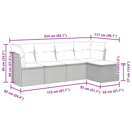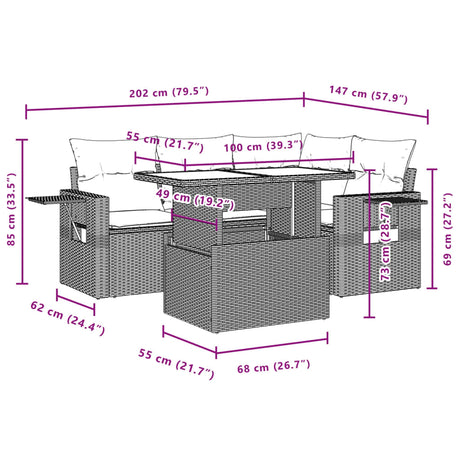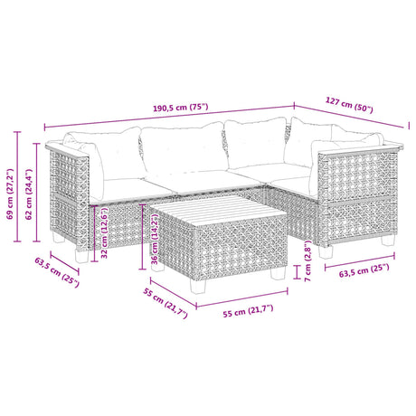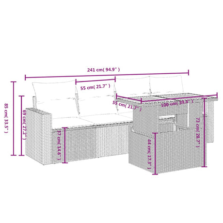5 Piece Garden Sofa Set with Cushions Grey Poly Rattan