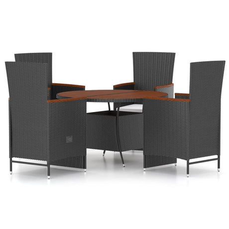 5 Piece Outdoor Dining Set with Cushions Poly Rattan Black