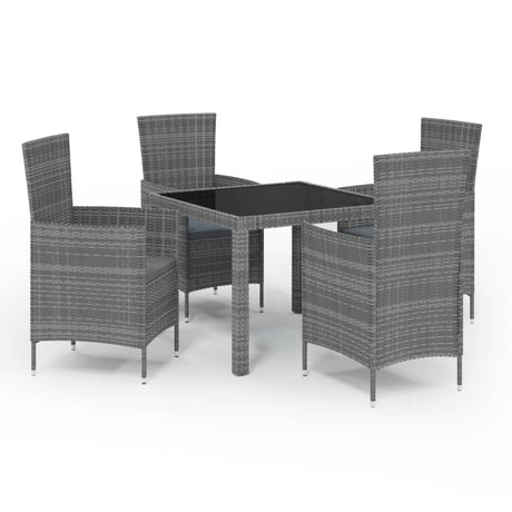 5 Piece Outdoor Dining Set with Cushions Poly Rattan Grey