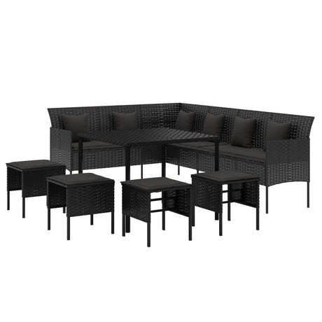 6 Piece Garden Dining Set with Cushions Black Poly Rattan