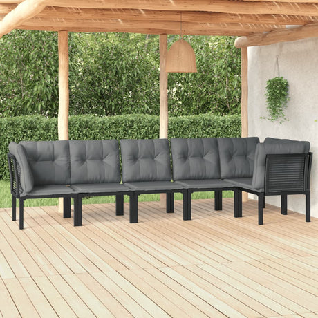 6 Piece Garden Lounge Set Black with Cushions Poly Rattan