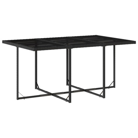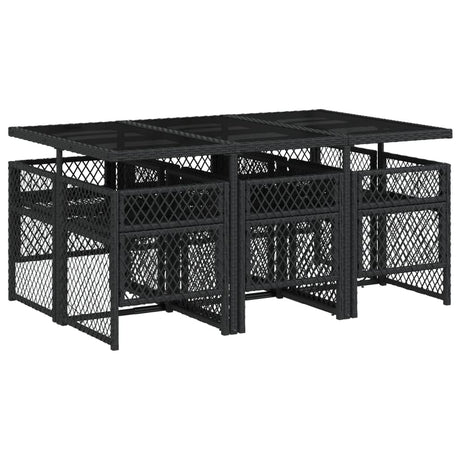 7 Piece Garden Dining Set with Cushions Black Poly Rattan Glass