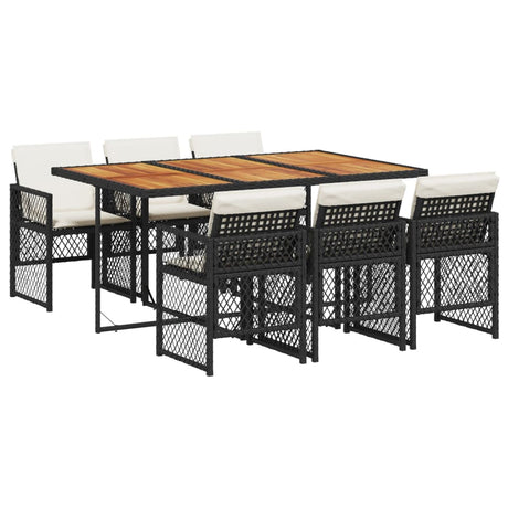 7 Piece Garden Dining Set with Cushions Black Poly Rattan