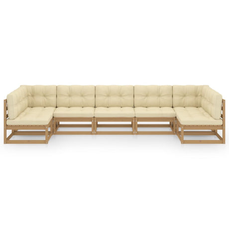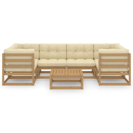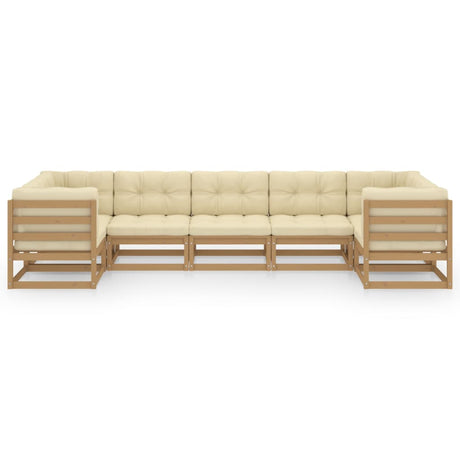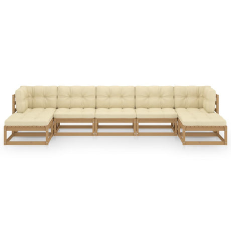 7 Piece Garden Lounge Set&Cushions Honey Brown Solid Pinewood