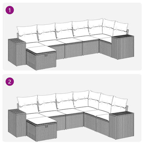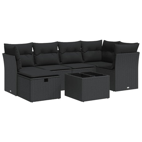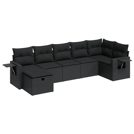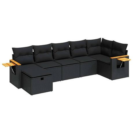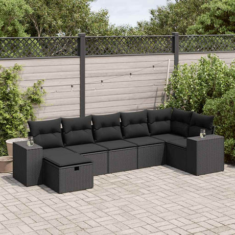 7 Piece Garden Sofa Set with Cushions Black Poly Rattan