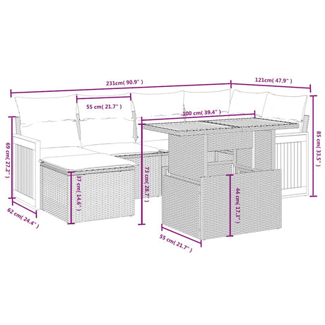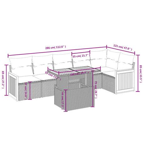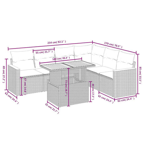 7 Piece Garden Sofa Set with Cushions Black Poly Rattan