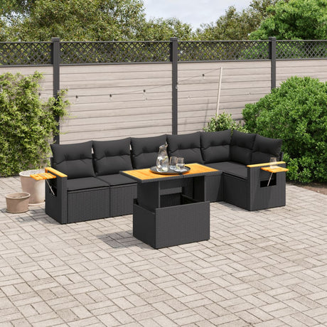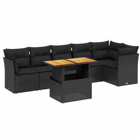 7 Piece Garden Sofa Set with Cushions Black Poly Rattan