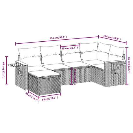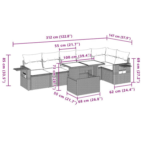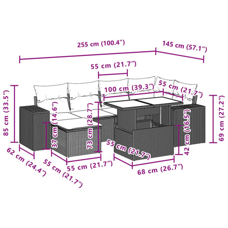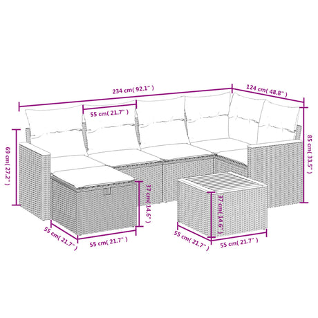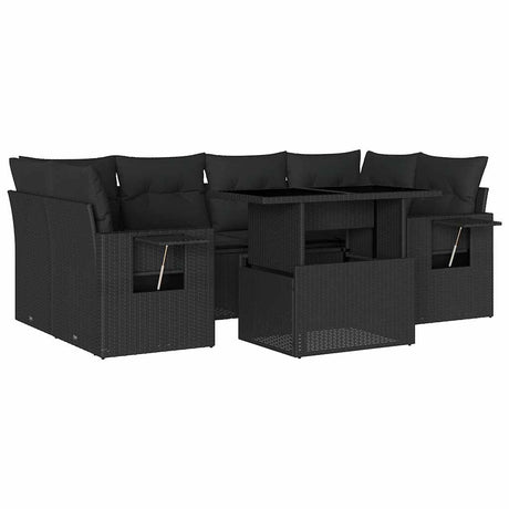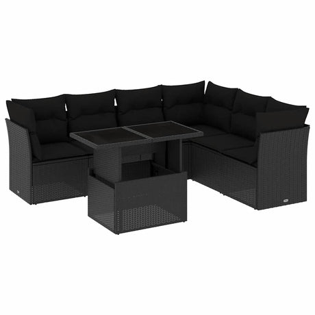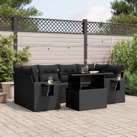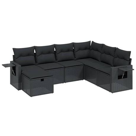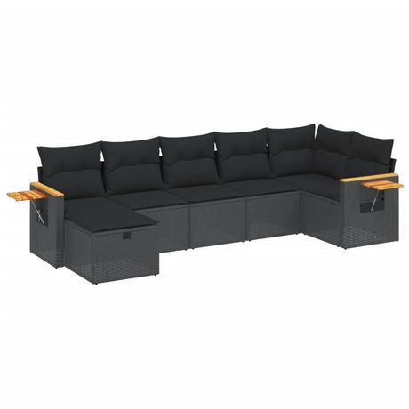 7 Piece Garden Sofa Set with Cushions Black Poly Rattan