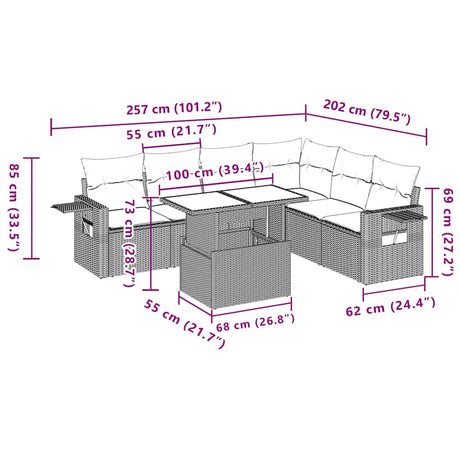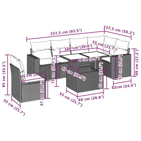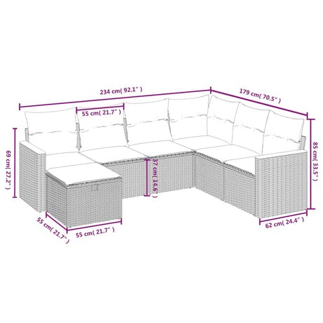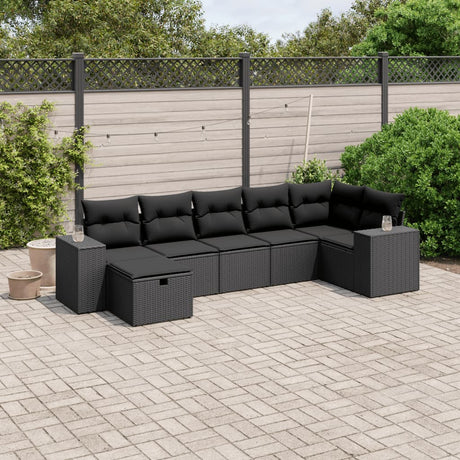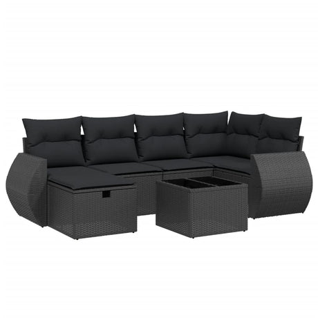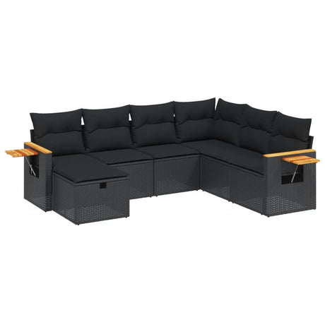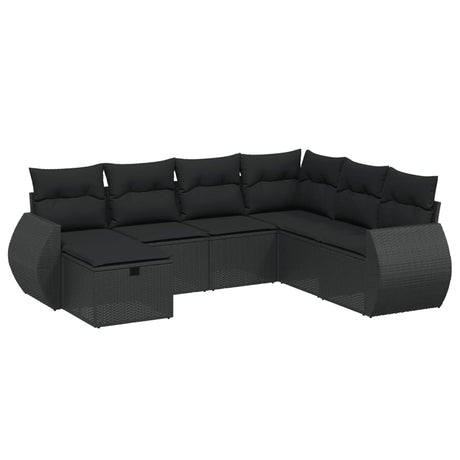 7 Piece Garden Sofa Set with Cushions Black Poly Rattan
