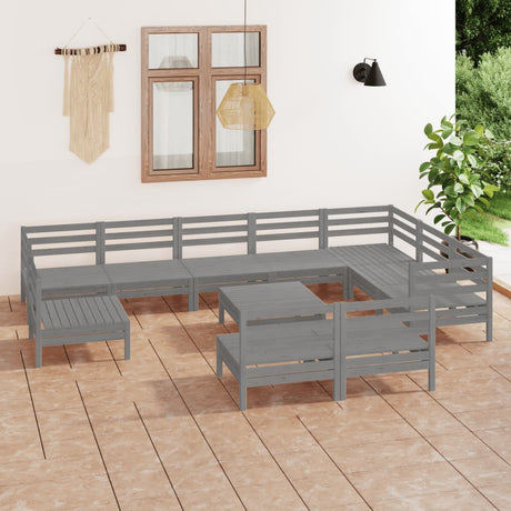 11 Piece Garden Lounge Set Solid Pinewood Grey