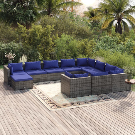 11 Piece Garden Lounge Set with Cushions Poly Rattan Grey