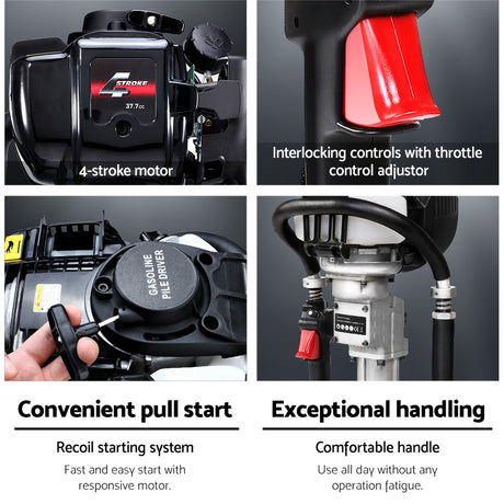 Giantz Petrol Post Driver 38CC 4-Stroke Rammer Pile Star Picket Fence Hole Black