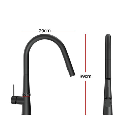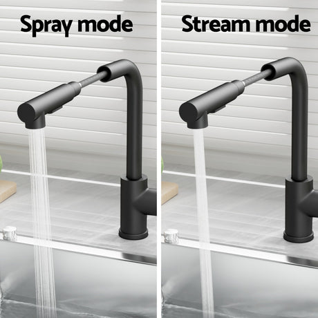 Kitchen Mixer Tap Pull Out Round 2 Mode Sink Basin Faucet Swivel WELS Black