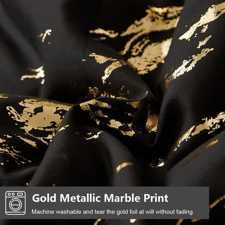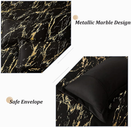 Black Gold Metallic Marble Comforter Set, King Size, Foil Print Glitter 3-Piece Bedding