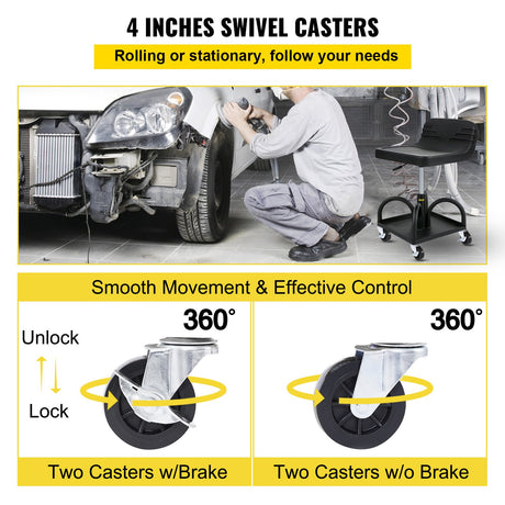 VEVOR Rolling Garage Stool 300LBS Adjustable Mechanic Work Shop Seat w/Casters