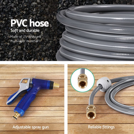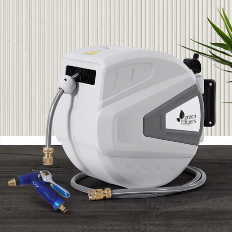 Green Fingers 30M Water Hose Reel Retractable Auto Rewind Wall Mount Garden Spray Gun