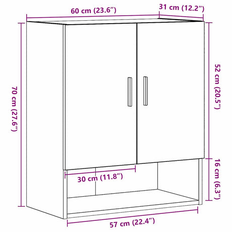 Wall Cabinet Black oak 60 x 31 x 70 cm Engineered Wood