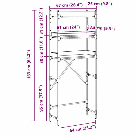 Washing Machine Shelf 67 x 25 x 163 cm Engineered wood