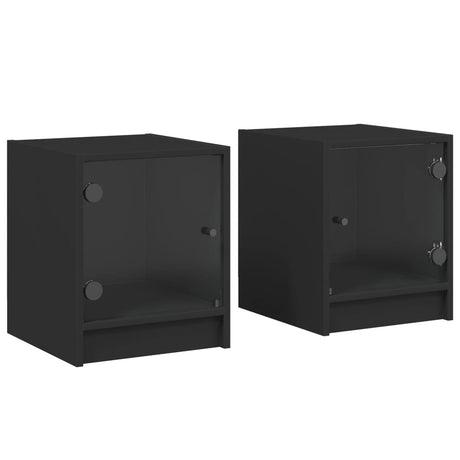 Bedside Cabinets with Glass Doors 2 pcs Black 35x37x42 cm