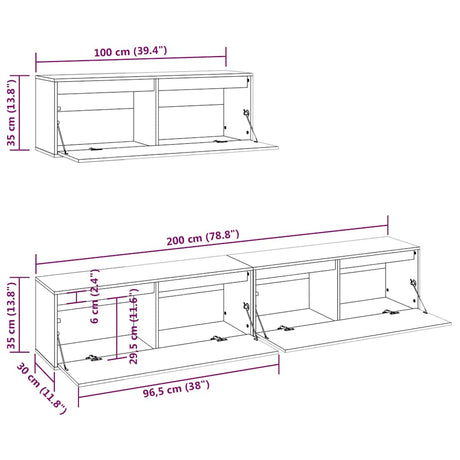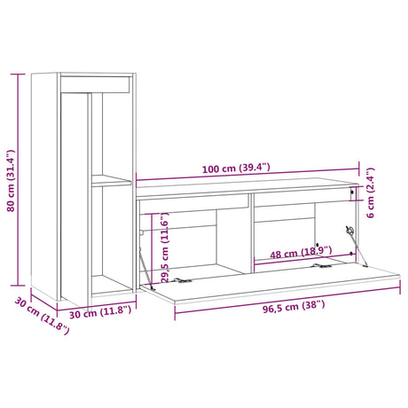 TV Cabinets 2 pcs White Solid Wood Pine