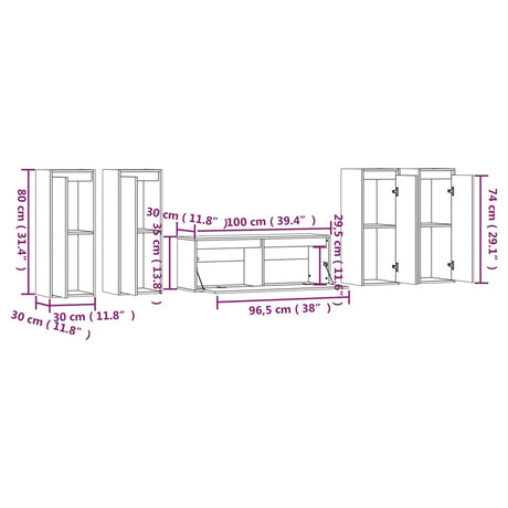 TV Cabinets 5 pcs White Solid Wood Pine